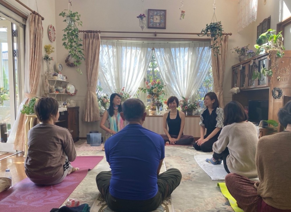 クリスタルボウルとヨガで体が心地よくほぐされ癒された後に、