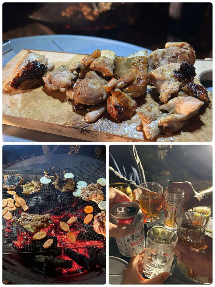 ヨガのあとは竹炭のバーベキュー!