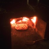 石釜でピザを焼きます。