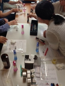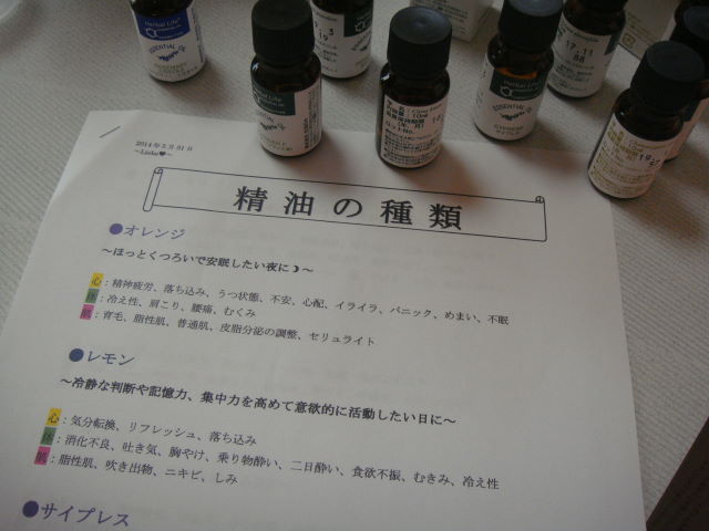 たくさんの精油の中から、自分で気にいったのを選ぶ。