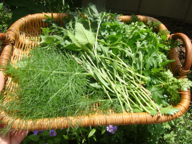 食べる前に摘んだハーブをかごにいれたら、良い感じ~