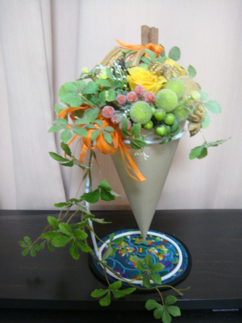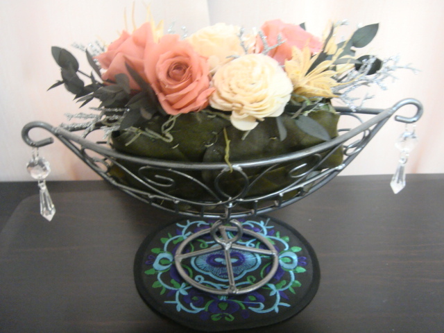早速プリザーブドフラワーの下に敷きました。